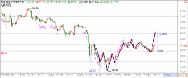 至于原油这里,69.5是守住了,那么就是要看一倍的H,就是76这里,我昨日文章也给大家说过。 ​大家不要觉得我在给你们在画饼,从62.4-69.5差不多就是7美金幅度。那么从69.5+7美金上去是不是就是在76附近。