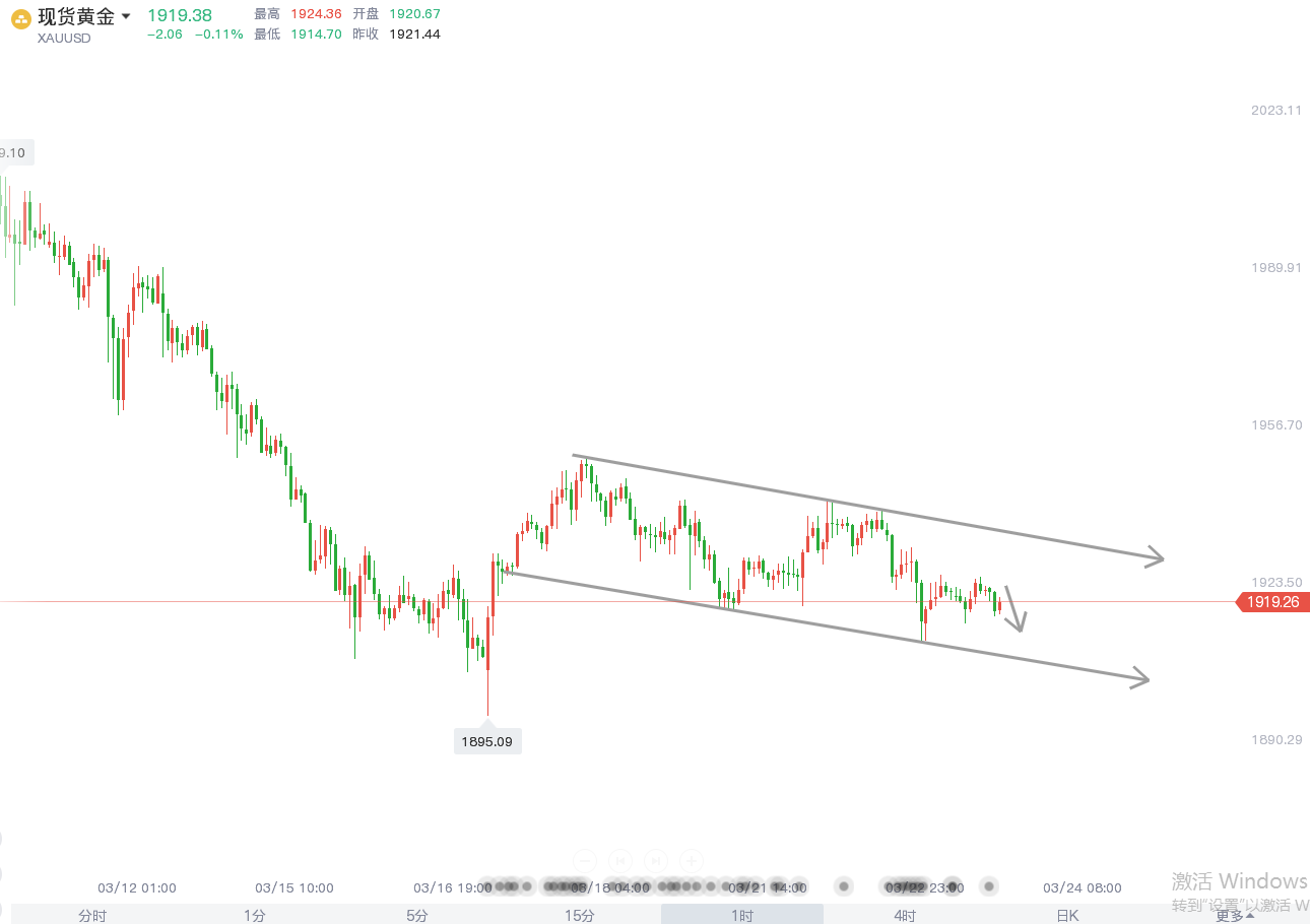 目前的走势结构属于慢跌,跌幅空间不是很大,伴随的是反弹,所以往返较多,日内留意的是下方的跌幅空间,虽然前期的影线低位在1895一线,但是实体部分在1917一线,昨日低点在1910附近,短期关注触及低位实体部分的支撑情况。日线阴阳交替低位形成修正整理走势。市场方面美联储官员强化加息50基点的倡议,但是地缘局势依旧扑朔迷离乌俄目前依旧处在交火状态,什么时候恢复和平还是未知,谈判依旧需要时间等待,所以短期市场依旧存在不稳定性,我们关注的市场动态从而对短期影响下价格波动的去向。整体上日内还是要留意周三盘面的转换,其次是弱势有待延续,日内反弹依旧滞涨,那么高空主空跟随,若反弹加大临盘再做调整布局。