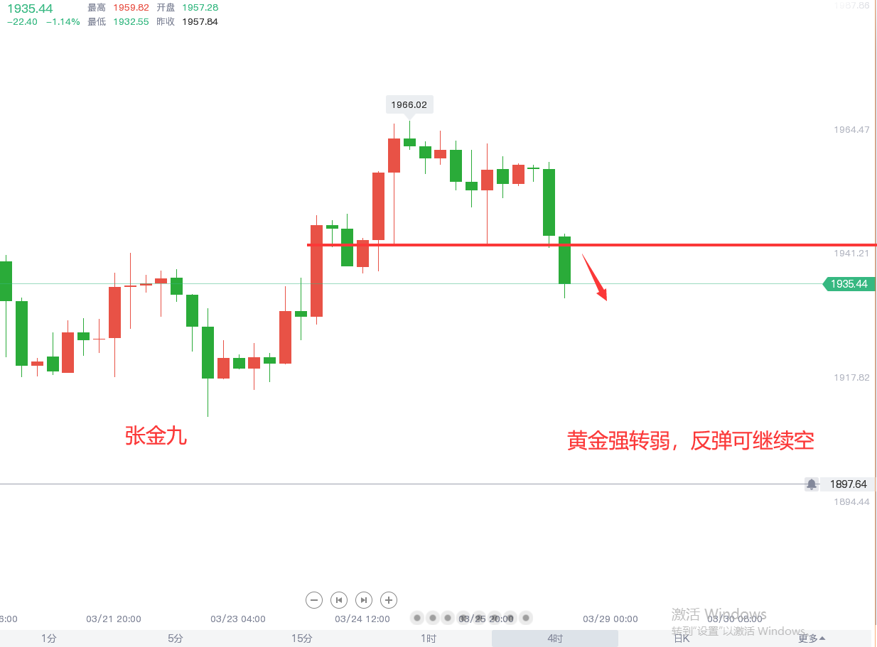 黄金周一按照原本思路,回踩跟多,但是早间的反弹上行之后回撤力度加大,破位1948一线,反弹没力度,午后我们果断跟空调整思路跟随,短期下行至低点实现一定的空头预期,涨势未能形成延续的同时,周一掉转方向开始回落,日内临近欧盘时段持续性下探形成高位回撤走势预期,短期关注下方的延续性,其次是欧盘是否有二次反抽进场机会,短期维持顺势跟随,反弹没力度依旧跟空看回落。欧盘反抽关注1945附近压制布局空,由于亚盘极弱下跌,欧盘反抽幅度一定不能太强,上方极限1951可以作为防守位置,反抽太高可能就转换成震荡或者反转。既然1937呈现破位,个人倾向于将继续回撤测试1924-25附近支撑。