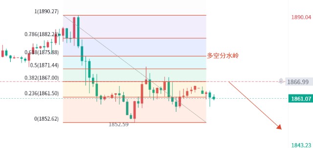 趋势方面,短期大跌之后结构依旧保持弱势环节,反弹上行力度有限,同时伴随二次回落,所以短期参考方面还是看好的跌幅下探,但是需要留意的是跌幅的预期不会和之前跳水的力度相比较小,所以以反弹高空为主。日内还是以稳健布局为主,短期关注低位的反弹力度,反弹上行受限在做高空计划为主,继续看回落,若反弹过高点,临盘在做变动,但是整体上周初趋势结构较为明显,今日黄金操作思路上秦氏金升建议保持高空为主。本周重点需要关心的一个点就是1875的多空分水岭位置,如果金价反弹越过此点位,就需重新规划做单计划。今日初步建议等待金价反弹1867附近做空,止损1872,目标看1852能否破位。多单再等实时更新。
