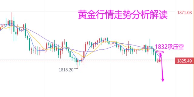 黄金昨日收于中阴线形态,并且继续承压于短期均线下方,而美盘再度冲高于1843附近后开始快速回撤,日线开盘后并且于欧盘再度冲高,两种表现也让我们对于后期的空头有了更大的期待,短线内黄金不断的陷入了区间震荡的循坏之中,这种形态很有可能符合我们的预期,在等待空头二次回落之后的修正,而目前黄金上方的压力也将维持于1840一线,虽然屡次上冲,但终究还是刺破性的试探,从短线内的回撤也可以发现,前期的上冲很有可能只是空头的一种洗盘动作而已,下行通道仍然完好,短期均线压制完美,同时1845全网公开进场空,大阴线直接抵达1820附近,实现空单六连胜,同时我们也是预测金价必然抵达1830下方,这个也是达到了目标,尽管1785一线有点距离,但还是那句话,只会迟到绝对不会缺席,拭目以待。