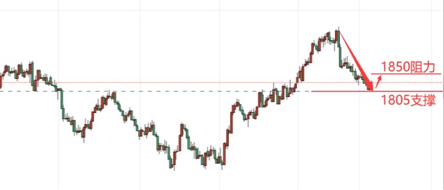 【技术面解析】黄金日内先承压1830一线回修,此回修还属于基础上的常规回修动作,下方再回撤至1812一线后也有回弹动作,但美盘后期期黄金突然出现调头反弹,在美指没有趋势拉升,基本面也没有相关利空消息的情况下,低点跌至1805/04一线后回弹震荡,美盘上升或多或少对黄金市场也带来了很有利的情绪影响