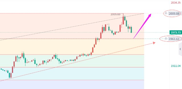 早间到欧盘,两波回踩多单未上车,等待回调给不到,欧盘后行情突破2000关口打算再次回踩开盘价进多,被打损离场。黄金冲高2009后现在回落,那我们假设2009就是这波上涨的高点,那么下方支撑,至少是今天的位置关注1961的地方,美盘操作上按照止损位1960去布局多单,也就是早盘低点1967附近,目标看1988的位置。目前手上有低位空单和高位多单不知道如何处理或者近期出现严重亏损可添加秦氏金升【指导官微:QSJS368】我会给予最大的帮助。