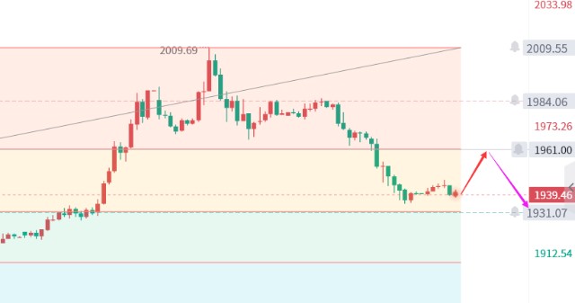 消息面解读:香港时间周四02:00,美国联邦公开市场委员会(FOMC)将公布利率决议和经济预期摘要;香港时间周四02:30,美联储主席鲍威尔将召开货币政策新闻发布会。周二,黄金价格在市场情绪好转的情况下继续下跌,接近关键的斐波那契支撑位1932.65美元/盎司。一旦跌破这一支撑,金价修正性跌势可能加速。市场人士等待美联储的货币政策决定。随着对银行业的担忧缓解,市场避险情绪降温,黄金价格周二出现暴跌。现货黄金当日收报1939.64美元/盎司,大幅下跌38.65美元或1.95%,日内最高触及1985.14美元/盎司,最低触及1935.37美元/盎司。文章建议和思路仅能为你提供一个暂时的方向,至于每天的进出场点位和解套时机还是以实盘为准、添加【薇芯:QSJS368】实时指导
