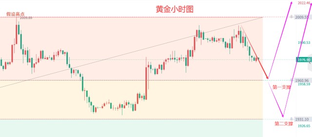 消息面只是秦氏金升个人的一个解读看法:现在回归于盘面上,四小时级别,我们假设的高点在2009这里,但是随着行情再度到达2000的心理关口,我相信大家追多是偏于谨慎,反而是摩拳擦掌的想去抄顶,由于是周五接近停盘,秦氏金升并不建议此种操作,且本周都是保持着一个低多的思路去看涨的,所以不排除下周还会有高点的出现,初步的预计是在2030附近。只要是周末的消息面不出现意料之外的事件,下周的操作上,秦氏金升将继续延续多头思路,直至于达到预期的点位。本周的收盘价在1977一线,小时图级别,两次探高2000上方均回落,但是下方的支撑还在。下周也没有重要数据公布,预计会是一个震荡的走势,所以下周初步的操作计划在支撑下方一个点为损位去布局多单看涨,上方关注2009的假设性高点的压制。