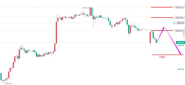 备受瞩目的关注非农数据公布,但是周五受休市的影响,黄金价格没有波幅。今日金价开盘走低,主要还是非农数据强化了美联储加息的预期,美指反弹导致。那么上周2030的空单我们可以持续下看,上周四的**空单也是获利中。目前盘面上来看,黄金自见2032的顶部以来,每天的高点都在向下运行,今日看看欧盘有没有反弹,保守操作等待反弹后再顺势做空即可。初步打算,反弹2006-**区间去空,目标先看1980附近。