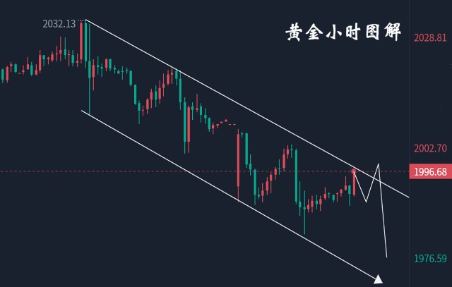 小时线阴线为主的回落走势,自冲高高点一线之后,止步于涨幅于2032一线,后市基本维持高位逐一回落,反弹之后二次依旧下行为主,形成了短期震荡回落的走势趋势,那么下方那个关注点起涨区域的支撑情况,也就是目前1990一线的有效破位,其次是下方低点触及后破位下方依旧具备一定的空间,所以日内反弹无果还是主空为主,昨日晚间反弹的高点至1995一线附近,日内作为空头入场的参考点布局,下方依旧关注1980一线触及以及破位情况。