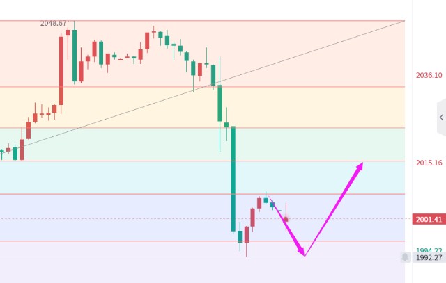上周五黄金亚欧盘震荡缓慢下行,美盘大阴跳水下跌。报收大阴线。当前金价已经跌破2000关键支撑位,腰斩本周半数涨势。当前MA5,MA10日均线金叉向上,MACD却出现向下趋势,红色动能柱逐步缩量。形态上迎来转变,方向侧重偏空。四小时级别,当前布林带处于开口期,MA均线三线向下,呈空头排列,瀑布线下行。当前MACD向下运行至超买区域,绿色动能柱量持续增量。黄金短期反弹后,有继续下行的需求。目前来说,黄金的周线2048附近有再次见顶的意思,那么下方需要关注1980上周低点水平,如果后续继续崩盘,那么周线走势可能形成冲高回落的形态,现在日线直接瀑布式下跌,直接盖住前面的大阳线,大阴线实体直接击穿日均线。所谓选择不对努力白费!投资也是看缘分的,如果你现在是一名投资者而又迷茫着,那你可以试着加下笔者QSJS368,我这里是你投资生涯的心理咨询师,我愿成为你投资道路上的一盏明灯带你扭亏为盈!