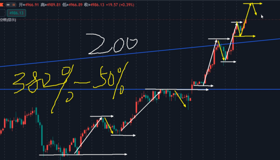 如果直接突破5000的话,到了5100附近再去考虑可能出现的一个38.2%—50%的回调幅度。