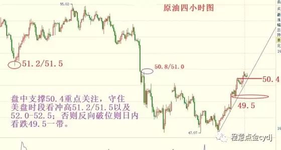 四小时来看,美原油多头趋势依旧保持,但随着MACD的走势平缓,量能的缩减,KDJ出现明显的拐头下行迹象,相信原油在短期内存在一定的回调修复需求,结合目前多头上升格局保持完好,惯性上涨的可能性非常大,操作上建议回调做多为主,下方关注50.30一线支撑。 1、上方51.30布局短线空单,止损0.4,目标50.20附近; 2、回落50.00附近企稳布局多单,止损0.4,目标51.00附近。破位继续持有。 每次写分析,我都希望看到的朋友能有所收获,在这个市场上,平静的表现下其实暗波汹涌,很多投资朋友轻易的进入,往往遍体鳞伤,每天都有很多朋友找到我,寻求帮助,然而更多的只是看完分析后迅速的找到下一篇继续看。我希望我能帮助更多的人,就犹如我自己对这份工作的定位是服务一样,人与人之间是相互的,信任是合作的开始。 翰风金管家 近期本公司推出“翰风金管家”业务,正对目前市场上亏损的客户和对投资有兴趣的朋友,每天为客户做出实时指导建议,晚间直播为客户讲解各类技术指标;不用你换平台开户,和你没有手续费关联,全心全心为你的投资保驾护航,在投资市场你缺少的是一个专心为你服务的人。 千里马常有,而伯乐不常有,人生最快意的三件事莫过于:棋逢对手,酒逢知己,将遇良才!我愿做你投资道路上指点迷津的伯乐,更愿做你的知心好友!实力打造精典,成功绝非偶然! 笔者是一名理财规划师,解读世界经济要闻,剖析全球投资大趋势,专注黄金、股票、原油、金银铜等走势分析,获取每日最新金融行情资讯,请搜索微信公众号ID号:cydj7788。