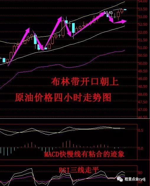 从四小时线来看,原油自3月底攻破布林带中轨压力后,截止目前油价一直站稳中轨的支撑,随中轨线的趋势震荡上行,期间几次下探测试中轨线的支撑都没有成功,油价周一进一步走高,继续位于60日均线上方,且各大均线都对油价构成支撑,但仍需关注53.4附近的阻力表现。小时线上升的延续性非常好,并且日线中阳上升收线还不错,今天小幅回落,原油进入盘整阶段,原油上方初步阻力为53.4,下方初步支撑为52.32。操作上建议回落做多,当然抓短线的空单利润也是可以的,但是需要谨慎,很可能一波拉升就会被套单,所以止损是必不可少的。
