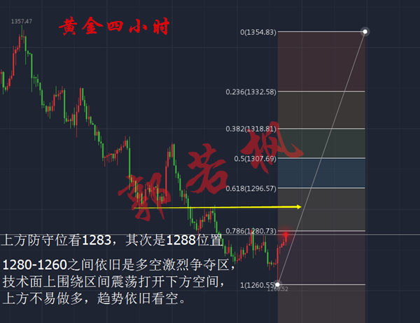 若枫观点:趋势上看黄金依旧是空头,消息面只是刺激多头反扑,急性反扑只是短暂的,昙花一现,整个大趋势,消息面是影响不了,后市关注美联储缩表,中线上我们将空头继续到底。 http://si1.go2yd.com/get-image/0HKt3GpsIMa 黄金技术面分析