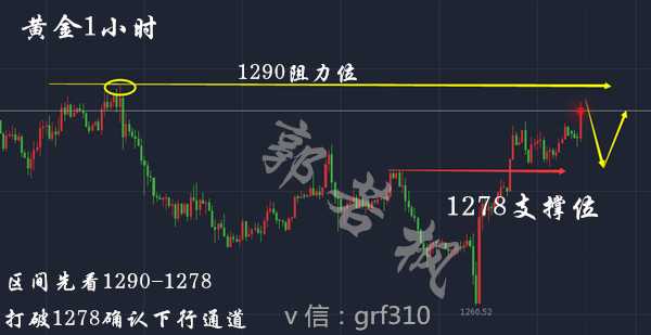 短线交易思路:1280-81多止损1275目标1290-1292。欧盘1290无法触及考虑空单,目标1278.(实时行情指导 咨询 交流添加维 grf310 公众号guorf310)