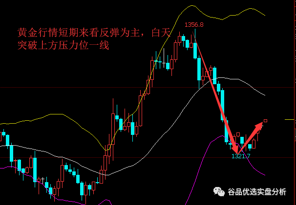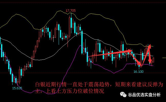 白银行情白天上涨,目前处于日线图中轨压力位一线,目前跟上早间建议的朋友建议可以稳健获利出局,上看上破支撑位继续做多为主。