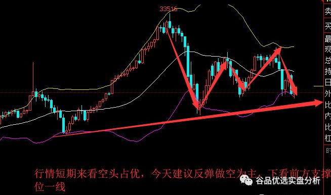 恒指白天行情较小,晚间行情来看建议反弹做空为主,看下破支撑位一线,思路跟早间分析一样。