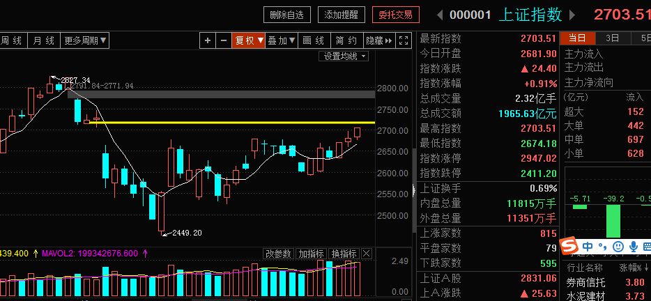 沪深俩市成交量;沪市成交1965.63亿元,深市成交2435.74亿元,两市合计成交4401.37亿元。