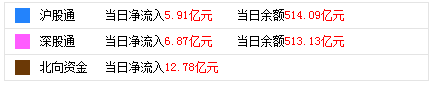 北向资金净流入12.78亿元 e公司讯,截至11月21日A股收盘,北向资金净流入12.78亿元。其中,沪股通资金净流入5.91亿元,当日余额514.09亿元;深股通资金净流入6.87亿元,当日余额513.13亿元。