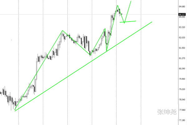 美原油上周开盘在78.901美元/桶,后行情先回落给出77.713美元/桶,后行情强势拉升,周线最高触及到了84.242美元/桶,后行情整理,周线最终收线在了84.129美元/桶,后行情以一根下影线很长的大阳线收线,而这样的形态收尾后,油价延续看涨思路。4小时多头高位强势再放量,形成小周期的台阶震荡上扬,单从短线结构图来看。目前处于多头逼空上涨行情当中。贴着短期均线连续整理放量上扬。短线在未失守台阶次低点之前。趋势上相对偏多,但考虑到日线逼近前高后的多空形态转换。还是要谨防探高回落。日内短线看多不追高。多空转换也就是形态变化的一瞬间。主要关注探高后是快速止涨回落还是维稳上涨。综上所述张绅尧总结:原油震荡上涨,今日高开高走操作先考虑回撤布局多单为主,下方支撑关注83.2-82.6美元/桶,上方关注85.0-85.5阻力,防守在81.5美元/桶。 文章来源【张绅尧】,唯一金牌指导。你给我一份信任,我还你十分财富。为你在迷茫的投资市场指明方向!你在我就在!你赢,我陪你君临天下;你输,我陪你东山再起!【文章最底部添加本人连系方式】 【张绅尧趋势交易】 在交易当中,我们经常会说到“顺势交易”,今天我就和大家谈谈何为势?如何顺势?“势”在字典中的本义是指力量惯性趋向,还有一些大家耳熟能详的成语,比如“势如破竹”、“势不可挡”、“大势所趋”、“势均力敌”等,这些都很好地说明了“势”的重要性。 其实在交易中我们所说的“势”也是一样的道理,是指行情客观运行的方向,换句话讲就是多头或者空头力量惯性趋向,我们把它称为“趋势”,行情的趋势一般分为三种:上升趋势、下跌趋势和震荡趋势。很多人只是把上涨或者下跌认为是趋势,把震荡则认为是无趋势,其实这是有片面性的。任何行情都有它存在的必要性,而且我们必须要去面对。 上涨或下跌趋势,有人曾经提出这样一个理论“上升趋势任何位置做多都是对的,下跌趋势中任何位置做空都是对的”,还有一些俗语“下坡的车子好推”“顺水行舟一人易,逆水划船十人难”,都充分说明了顺势交易永远要比逆势交易盈利几率高。西点军校也有一条铁律“飞来的子弹具有优先通过权”,运用到交易中就说明了不要去逆势交易,否则刺穿进场点瞬间亏损会让你心态随之改变。 震荡趋势就比较简单了,在一个区间内来回折返,我们只需要在区间的上下限去操作就可以了。震荡趋势不同的是要分清此前是上涨还是下跌,如果此前是上升趋势,一旦向上突破就需要跟随此前趋势做多了;反之如果此前是下跌趋势,一旦向下跌破就需要跟随此前趋势做空了;这个就不需要详细解释了,因为这种横向整理多位中继形态。所以震荡趋势在区间内就采用高抛低吸操作,一旦突破区间就必须顺着此前的趋势去操作。 本文由张绅尧(zsy91598)供稿,解读世界经济数据,剖析全球投资大趋势,对原油、黄金、白银等大宗商品等有深入的研究。