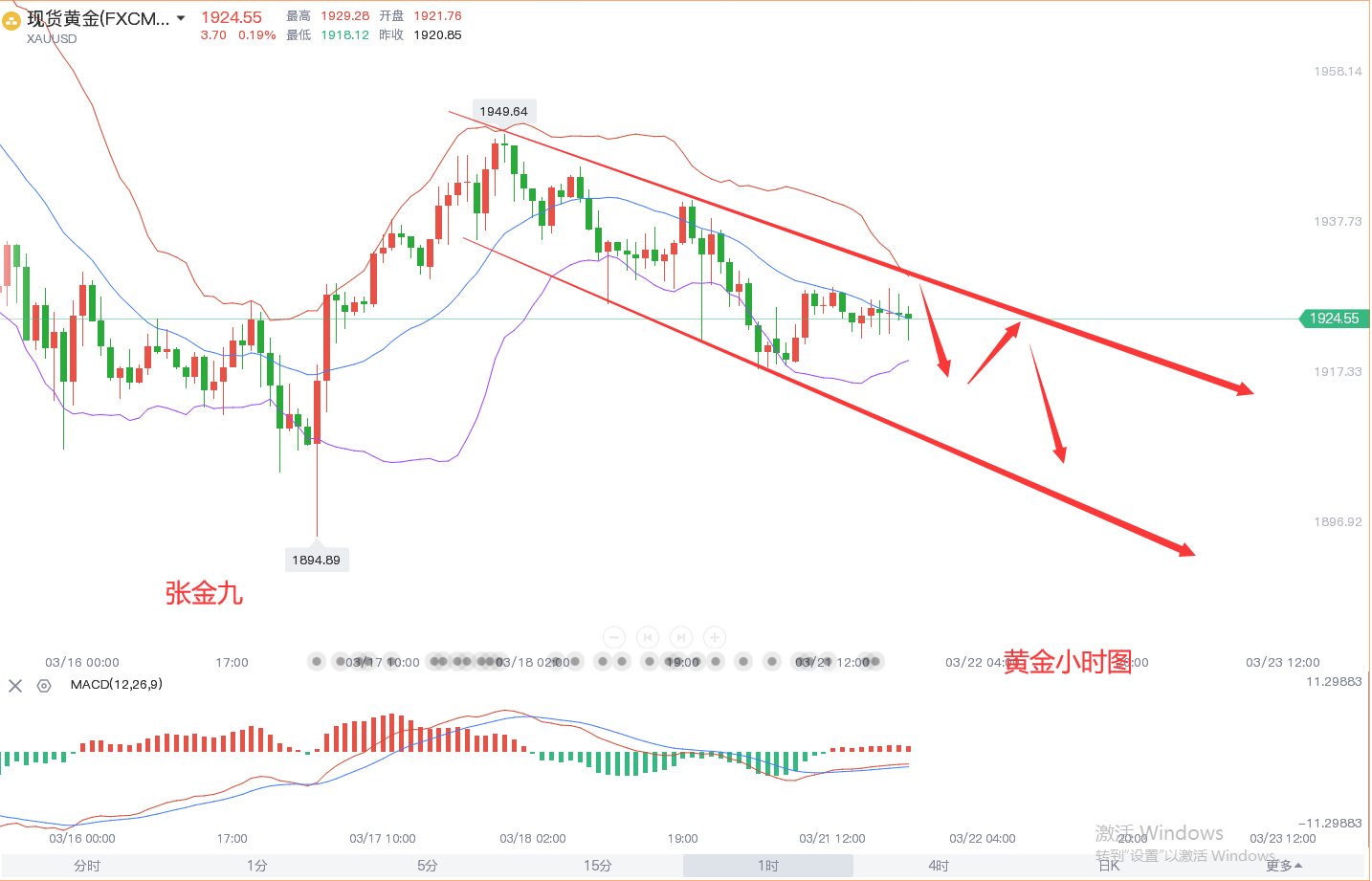 黄金晚间策略参考:1930空单参与,止损1940,目标1920/10,破位持有!