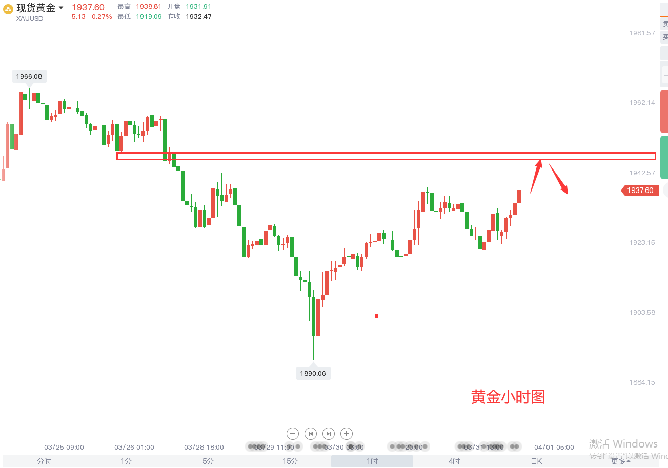 盘中可以看到,黄金在经历暴跌及50美金的强V反转后,目前震荡,同时走的是短线三角震荡收敛,三角震荡收敛形态往往是暴风雨前的宁静,一但破位容易走小单边;这个形态结构来看,一单破位1935一线,那么上方可见1945-1950区域,届时建议空单进场,V型反转结构没破坏前,下方如破位1920,不看好太大空间,下方首次破位1920,继续做多一次,具体点位1915-1918区域做多;若非要为这波行情定义方向,金九(维芯ZJJ831003)个人倾向于向上破位,也就是美盘黄金预计会有一个冲高的过程,美盘不给高点不要轻易试空,美盘1945-1948区域做空!