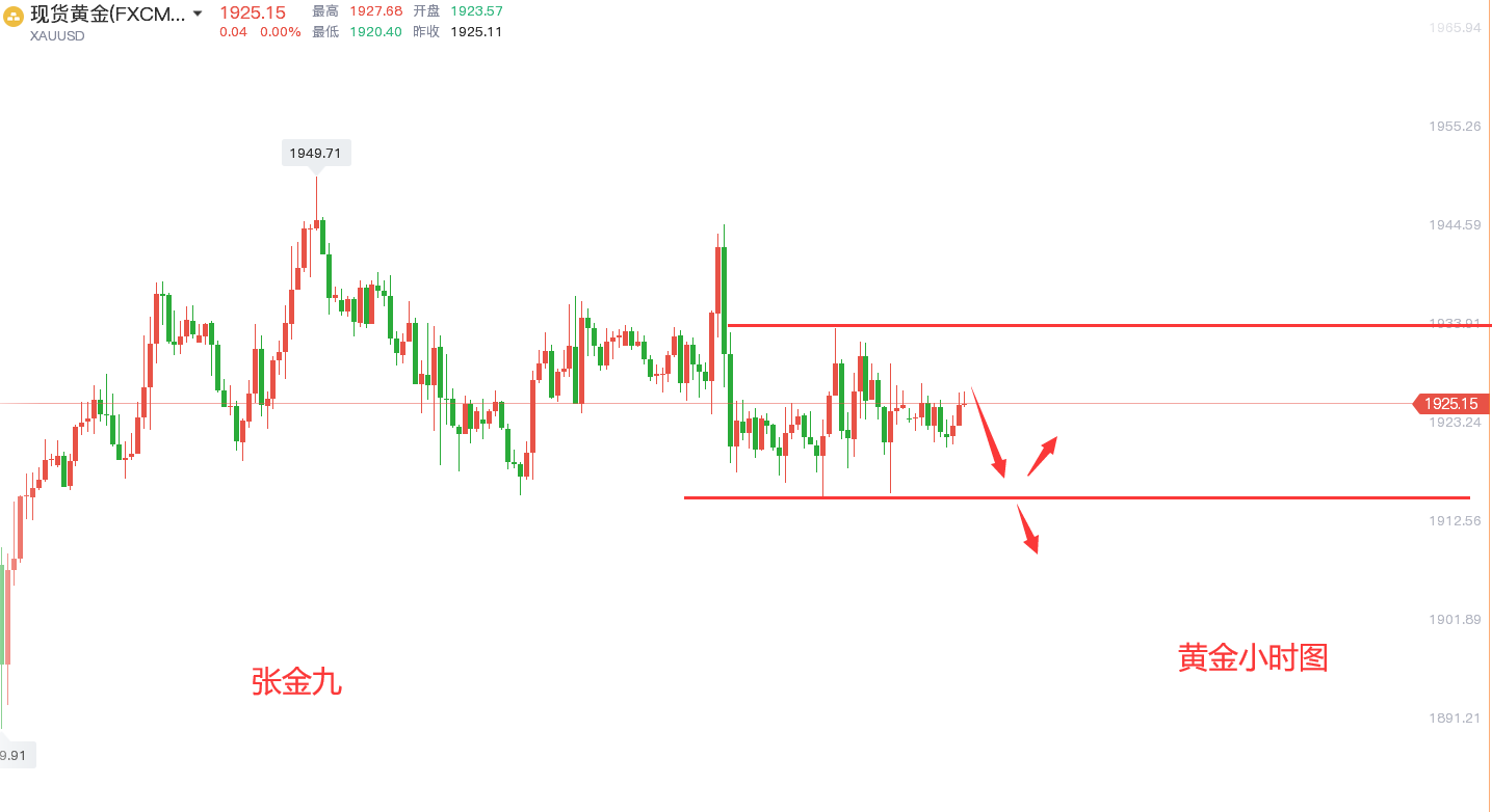 黄金今日策略:1925-27空,损1934,目标1916减仓看1910,激进的朋友继续1915-1935之间反复操作,破位及时止损一单即可