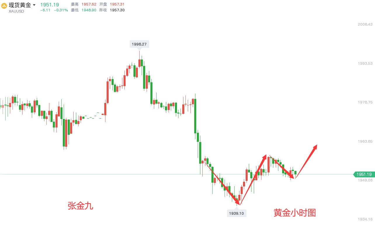 黄金小时线级别,隔夜震荡慢反弹,但价格还是压制周三凌晨1958下运行,因此今日早盘依托通道反压1958下直接触及空,跌至1950第一目标获利减持,当前窄幅震荡,短期阻力1954,短期支撑1950,看小区间哪边破位,往上冲破则容易试探1960(通道反压随着时间会逐步上移),往下破位则试探昨晚起涨点1944一线,以及昨日低点1940-39;从macd运行形态看,即便价格往上走高,也容易冲高回落反复震荡,因为价格拉高会触发顶背驰可能,红柱量能跟不上;同样的,价格若走低,破位昨日低点,也会触发底背驰而探底拉升;因此,个人认为今日更多的还是震荡上行,亚盘震荡走低 ,欧盘震荡上行,美盘小加速 。故欧美盘建议低多为主。目前仓位上有单的朋友,由于笔者不知道你们套单的点位以及仓位的详细情况,不好给出相应的解套策略,需要解套的可加张金九【**:ZJJ831003 QQ号:809718881】