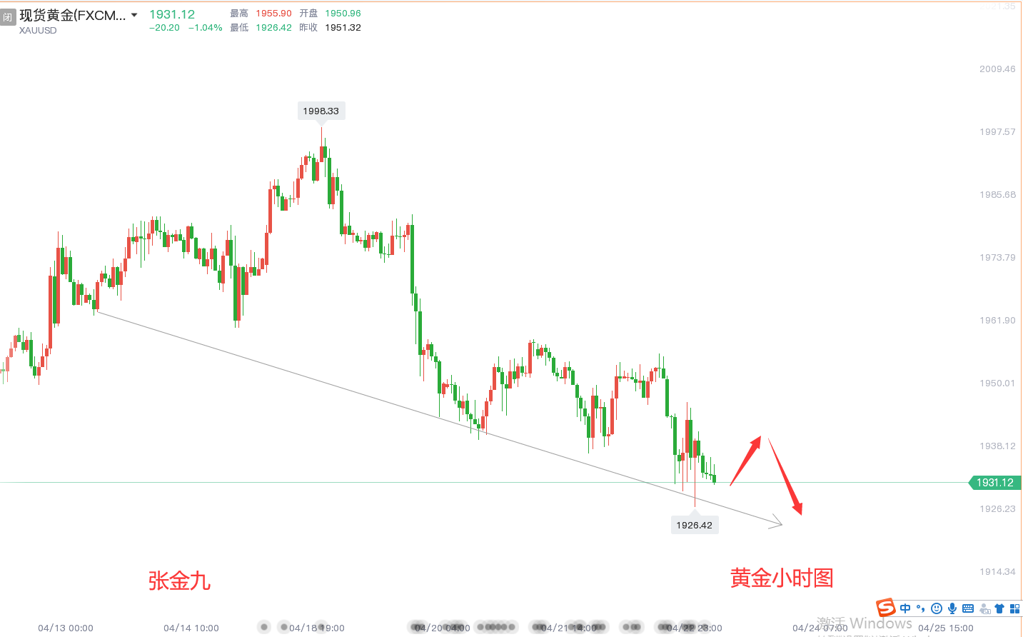 周五(4月23日)当周金价势将录得下滑。金价本周承压,主要因美联储再度向市场释放强硬的紧缩观点,市场对美联储加速加息的预期升温,这给了金价沉重的压力。不过,美国通胀高企,全球经济前景遭下调,俄乌冲突等因素将**金价下行。展望下周,市场又迎来一系列美国重磅经济数据的考验,其中包括美国一季度GDP初值数据,同时有关俄乌冲突等地缘事件,以及市场对美联储最新的加息预期变动,投资者也要保持关注。 黄金技术面,日线级别,短期黄金自本轮1998回落以来陷入震荡,昨日测试1936附近后反弹收盘录得十字线收盘暗示多空进入胶着状态,而当前回落结构较为良好,或有助于短线再次下探寻找低点。1-4小时级别,短线走势连续两日震荡受限于1960下方形成箱体,日内亚欧时段继续测试1960下方阻力后回落,或有望形成中继继续向下测试,投资者下周或重点关注短线1950及以上点位测试高空尝试,下方支撑1916附近。