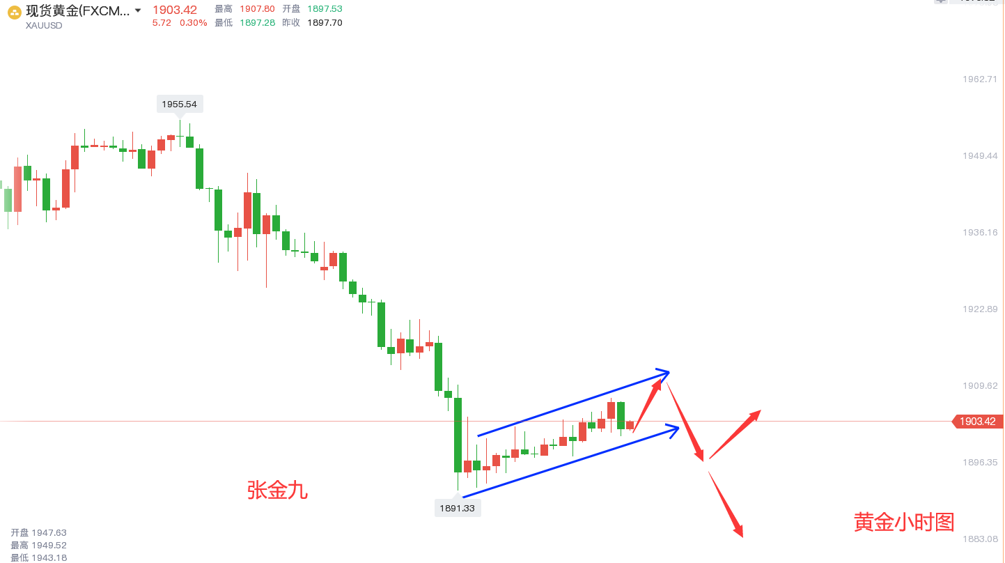黄金策略分享:反弹1910空,1915加仓,损1922,目标1895附近