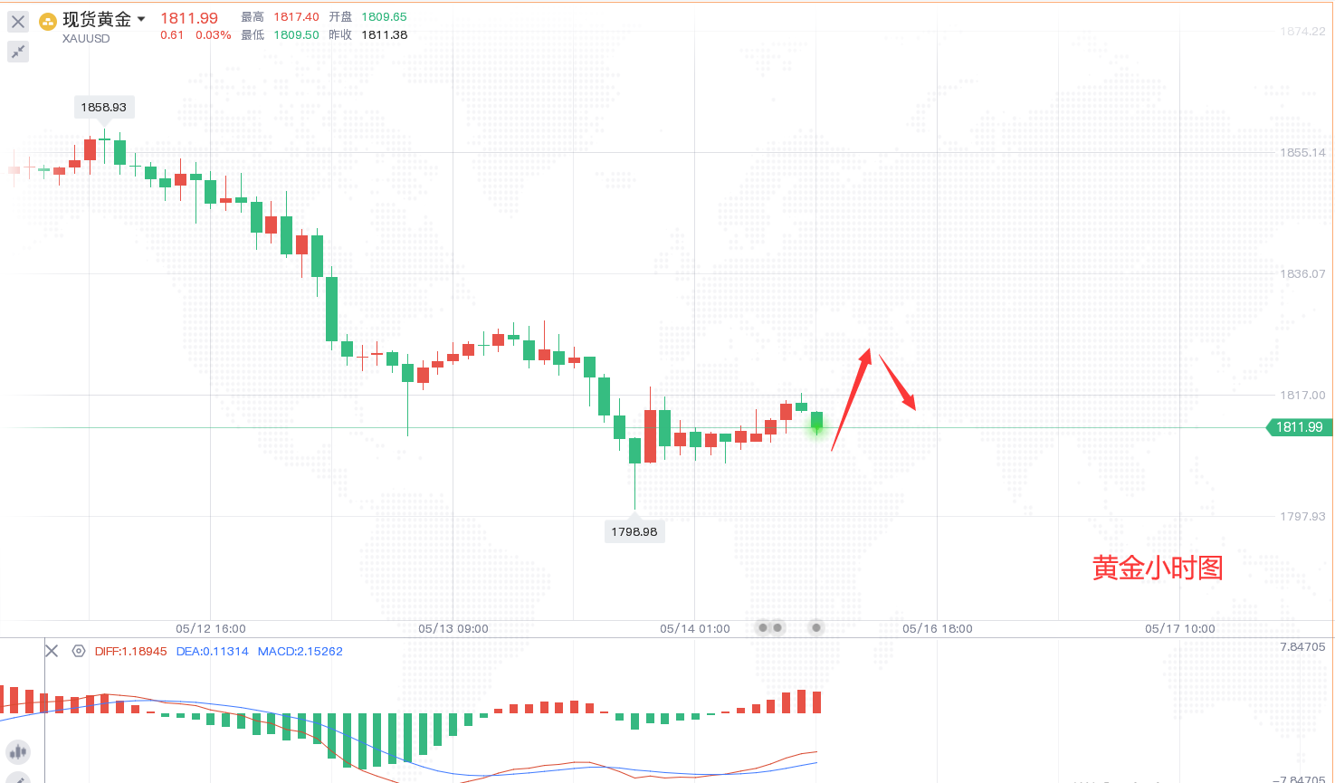上周由于通胀数据表现未如市场预期有明显的回落,美联储多位官员再度表态将更大幅度加息,从而令市场对于美国经济前景更为担忧,美股全线下跌,美债收益率同样下跌,不过美元指数强势走高来到105关口区域。黄金则呈现扫荡式下跌的走势,以前一个高点作为压制,接连跌破低点向下放量,周五尾盘还破了1800关口,尾盘探底回升修正,全周累计跌到将近3.8%,创下今年以来的最大当周跌幅。本周市场需关注美联储多位官员相继发表讲话,周三美联储主席鲍威尔的讲话需要重点留意,此外还需要关注欧元区4月CPI数据,美国4月零售销售数据等等。