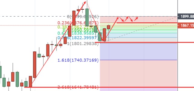 【趋势分析】周一高开低走,周二继续加大下跌趋势,录得大阴柱,周三触底1809一线收1813一线给出十字星日k,预示行情反转,不出意外,周四延续反转行情,开盘1813一线收盘1829一线,周五继续阳柱收官。至此行情V型反转呈现出来,先跌后续再涨。本周,奉百禄要提醒的是,若金价突破且企稳1862/1870区间,这将止住中期的跌势,推动金价开始复苏尝试,并重回主要看涨趋势。目前有被套的朋友,由于笔者奉百禄不知道你们被套的详细点位和仓位的具体情况,在这里不好给出相应的解决策略,需要离场的朋友可单线奉百禄