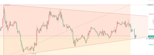 黄金本周高开走低,目前行情于1960附近交投。亚盘金价的下跌主要是受消息面的刺激,欧佩克减产引发通胀压力过大,美指小幅走高,黄金下挫。目前盘面上来看,月线收阳,黄金下破周评分析的上升通道,目前达到了三角收敛的下轨。虽然早间信号给出的是走弱,但是由于今日是本月的第一个交易日,亚盘秦氏金升建议还是稳健一些,观察一下行情的走势后再去做日内的策略与操作。上方的压力位还是先关注1975的短期压力,强压在1995附近,下方的支撑且关注1955的地方,强支撑在1931附近。