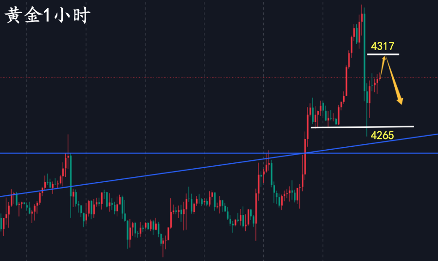 周一黄金的话,整体就以震荡的思路去看待,上方关注4317一线压力,下方支撑看4265一线。重点看欧盘的一个走势,只要欧盘不弱,那么晚间美盘就可以去看北上。
