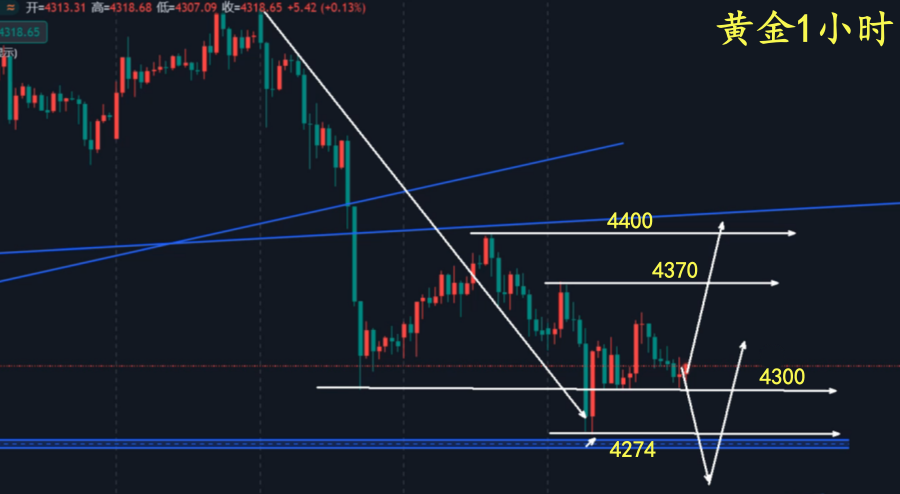 所以,无论从哪个角度上来说,明天周五都是反弹的概率更大一些,支撑在4300关口,压力4370—4400一线,即使跌破了4274这个低点位置,大概率也会拉起来的。