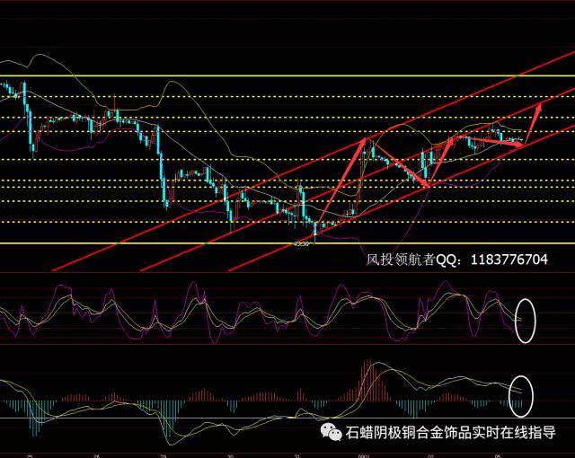 美原油: 从小时线来看,原油目前处在高位布林线上轨与中轨之间盘整,且有蓄势待发之势,且布林线缩口,结合观察上方通道线所给出,很显然,行情将走出小幅回落之后开始选择方向,但由于前几日均呈阶梯式缓慢震荡上行,所以日内本人更倾向于多头,且看上图下方KDJ和MACD皆有上拐合拢之势,如果判断没错,本人日内建议如下: 1、 回踩47.20做多,止损47.00,目标看47.70 2、 若见47.80做空,止损48.00,目标看47.30 3、 如若机会错过,可重点关注47.60,如若再此点位盘旋,有小幅回落皆可进场短多,利润自行把握即可 行情皆具有时效性,建议不具时效性,有需要可以找到本人实时*