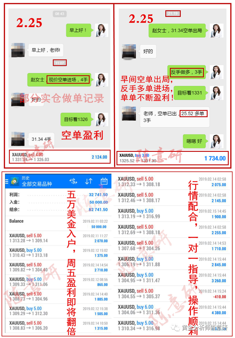 周初黄金的波动比较小,高点在1332附近,低点在1325附近,但是并不影响我们获利。赵女士周初跟上操作,成功获利10点利润。早间黄金1332强阻力未突破空单便果断进场,晚间空单获利,反手做多毫不犹豫。抓住行情就是抓住利润,上周八万美金这周持续盈利中,本周预测震荡行情居多,如若看准方向,单单盈利也不是不可能,但如若盲目操作单单亏损也在意料之中。想盈利还是想亏损就看你如何选择! ====早间看空,晚间看多,多空双赢!====