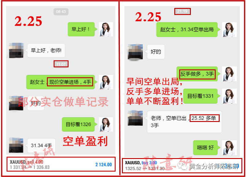 周三黄金行情呈慢跌形式,上方压力1332迟迟未突破,隔夜跌至1316一线,周三早间通知实仓客户空单进场,晚间行情明朗,空单盈利不止。周四黄金下跌受阻,意研果断多单进场,目前行情突破1325压力,上冲1326,多单顺势获利2500美金,近期黄金震荡行情,多空转换频繁,掌握变化方向尤为重要。意研操作稳健,果断,从不会放过任何获利的时机,意研文章策略实时更新,如有操作不理想可时刻联系意研。 ====周二早间看空,晚间看多,多空双赢!====