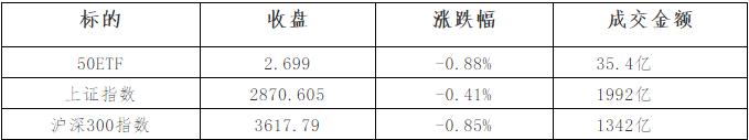 波动率: 50ETF波动率指数,早盘高开后快速回落,之后回升基本围绕前收盘价震荡,与标的走势负相关,尾盘随标的反弹再次回落,环比收跌于23.3%(上一日为23.9%)。 50ETF波动率日内分时走势(2019年5月20日)