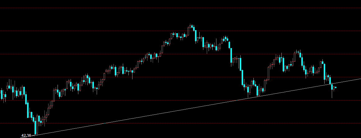 原油也是在下破42.36上升趋势线之后开始多空反复拉锯,呈现窄幅震荡走势。目前行情来看,在53.6-53.77之下承压还是可以做空的。一旦上破的话上方阻力在54.7一线,下方支撑在51.2/52。