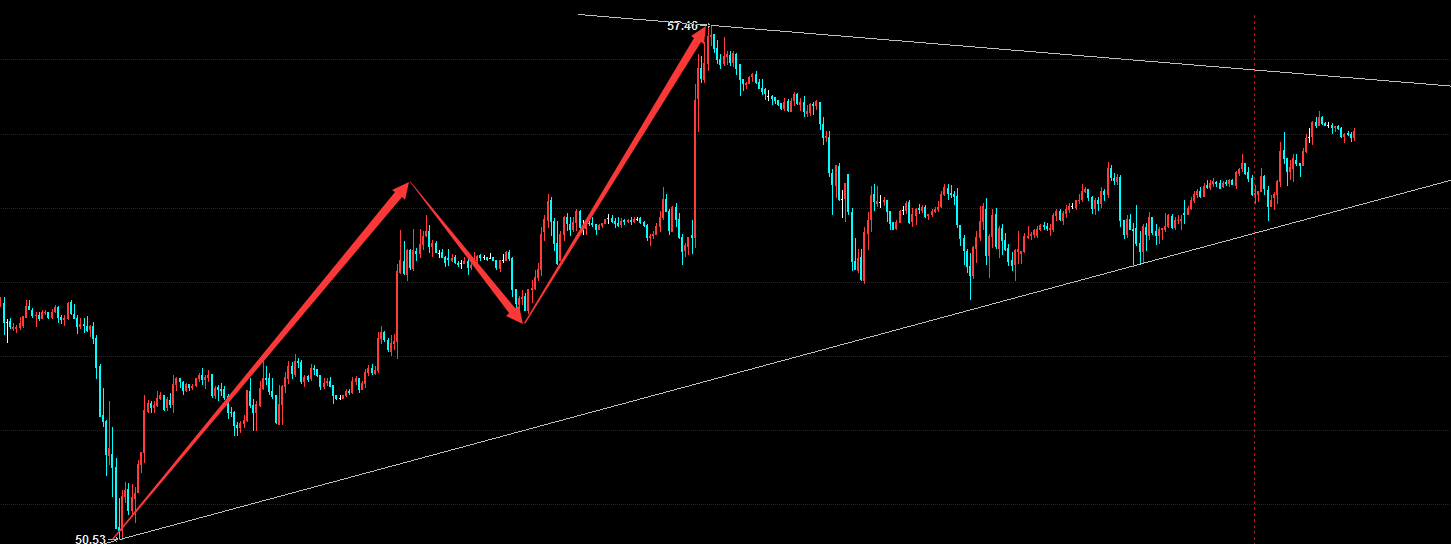 ​原油从50.53-57.4是一波3浪的上涨,而且从57.4来看这波回调也是结构比较单一,目前的行情走势也是不具备有主升浪的特性。所以个人认为应该回调还没有到位,下降趋势线阻力在56.8一线,下方关注55.2的支撑情况。 昨天也给各位分析到黄金走了一波5浪上涨之后会跟着一波回调,而且回调点位在1505一线,昨天的行情走势也是打到1503开始上涨。但是从昨天的反弹力度来看,1505的反弹力度比较弱势,还有一种情况就是从1545.9-1490.8走的是A,1490.8-1538.4走的是B,那目前行情运行就是C,那这波回调的目标点位就是1490/1480一线了。今天关注下昨晚凌晨低点的情况,破位的话下看1490/1480。反之企稳还是可以做一波多单!