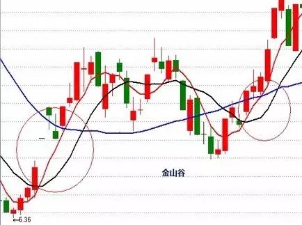 主要特征: 1、出现在上涨初期 2、由3根短、中、长期均线先后交叉组成,形成一个尖头向上的不规则三角形 技术含义:见底信号,后市看涨 操作建议:银山谷一般可作为激进型投资者的买进点。 金山谷http://si1.go2yd.com/get-image/0asRJGMgQjY