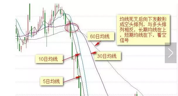 主要特征: 1、出现在涨势中 2、从上至下由短期均线、中期均线、长期均线组成 3、三根均线呈向上圆弧底 技术含义:做多信号,继续看涨 操作建议:在多头排列初期和中期,可积极做多,在其后期应谨慎做多 空头排列http://si1.go2yd.com/get-image/0asRJHZ3JBI