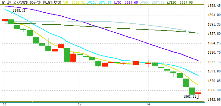 上周,五金价格大幅下跌,最高接近30美元,最低为每盎司1874.31美元。上周,金价也连续第二周收跌。亚洲市场周一开盘后,金价继续下跌,最低跌至1863.11美元/盎司。